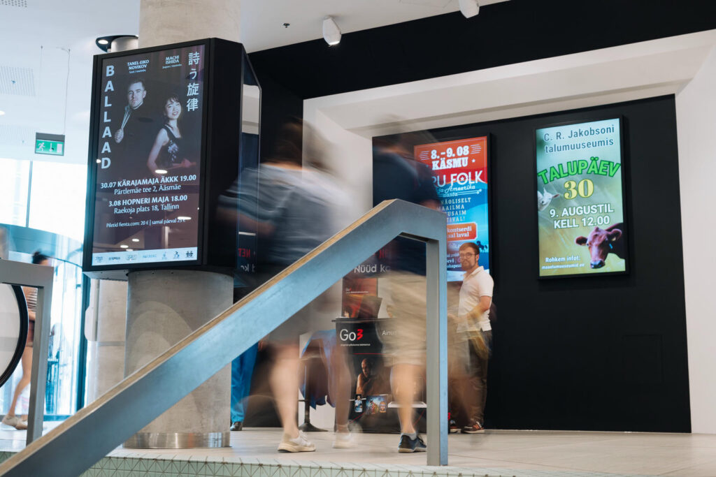 Postmaja Center interior screens in Tallinn